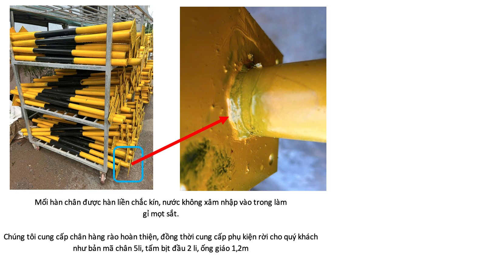 ✅ Chúng tôi tự hào cung cấp chân hàng rào công trường với thiết kế chắc chắn, phù hợp cho mọi công trình. Với chất liệu thép bền bỉ và lớp sơn bảo vệ chắc chắn, sản phẩm của chúng tôi đảm bảo chịu được mọi điều kiện khắc nghiệt, đồng thời tạo sự an toàn tối đa cho công trình.