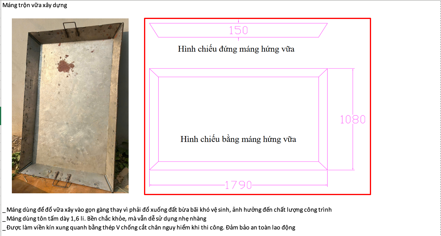 Máng trộn vữa xây dựng là giải pháp an toàn - bền - tiện lợi, giúp thi công gọn gàng, nâng cao hiệu quả và hạn chế rủi ro tai nạn lao động.
